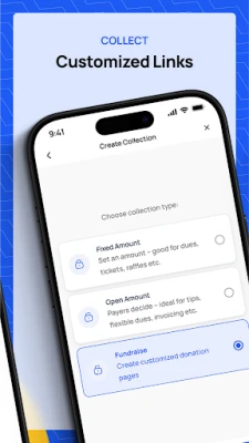 Payment Collection- Share links or QR codes to collect dues, donations, or event fees. Accept cards, ACH, Apple Pay, Google Pay, and more