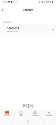 Battery level - the app shows the current battery level of the PEEK sensor.