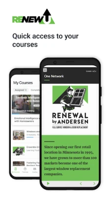 RenewU is the mobile application for Renewal by Andersen network. Access your training content on the go and take your learning with you anywhere, any time you want. Works with any mobile device. You can even download a course to complete offline.