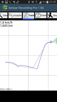 Furthermore, it can read out all the measurement values, display them in table form or graphics and store them as an ASCII file (csv = comma-separated values) for possible further evaluation, e.g. in a spread sheet like MS Excel. That is the main focus of this app, as its name indicates. Moreover, position data are recorded in a kml file for direct display with a program such as Google Earth. All related files are located in the sub-directory "SensorRecording".