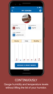 Keep a watchful eye on your cigars without lifting the lid of your humidor or container. The CI Smart Sensor will continuously gauge humidity and temperature levels inside your humidor and container providing access to those vital readings. You will receive push notifications if readings are outside your customized humidity ranges or if someone dips into your container. Analyze your hourly, daily and monthly readings, then use that info to adjust for seasonal changes or newly introduced valuables. Once you’ve linked your CI Smart Sensor to your iOS device, you can rest easy knowing that your sensor will monitor your valuables using Bluetooth Low Energy technology. The CI Smart Sensor keeps watch even when you can’t.
