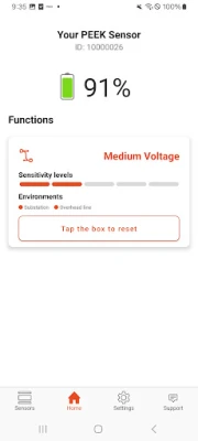 Battery level - the app shows the current battery level of the PEEK sensor.