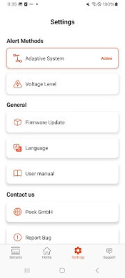 Alert Method “Voltage level” - the app allows you to change the voltage level PEEK settings according to your working environment.